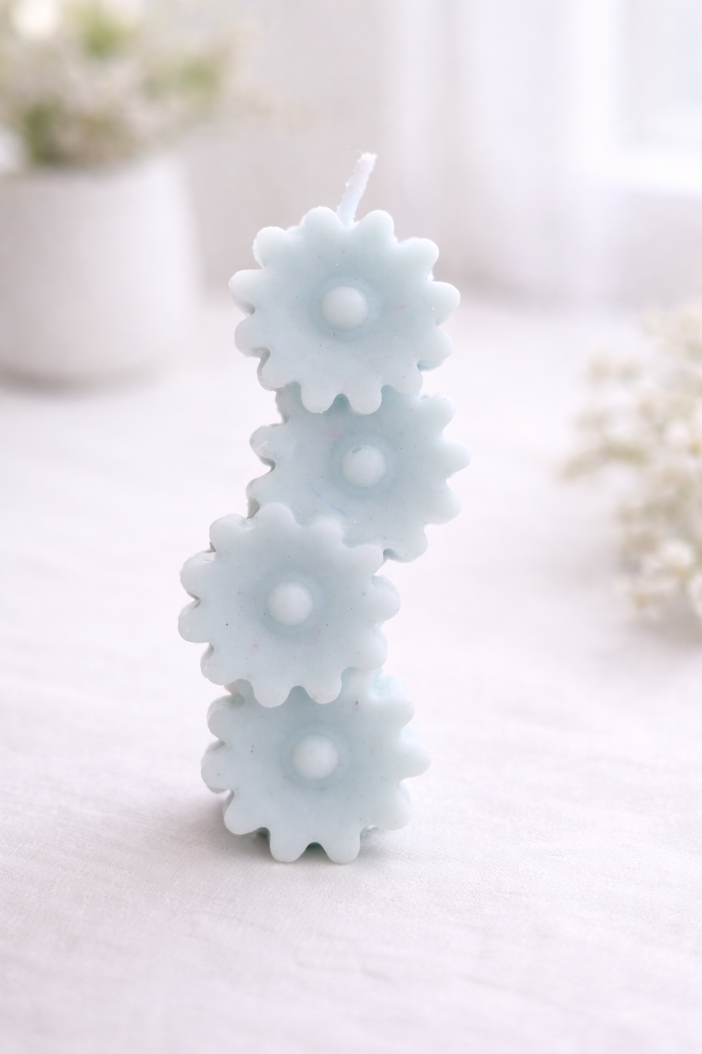 - DESIGN: Beautiful floral pillar candles featuring stacked flower designs