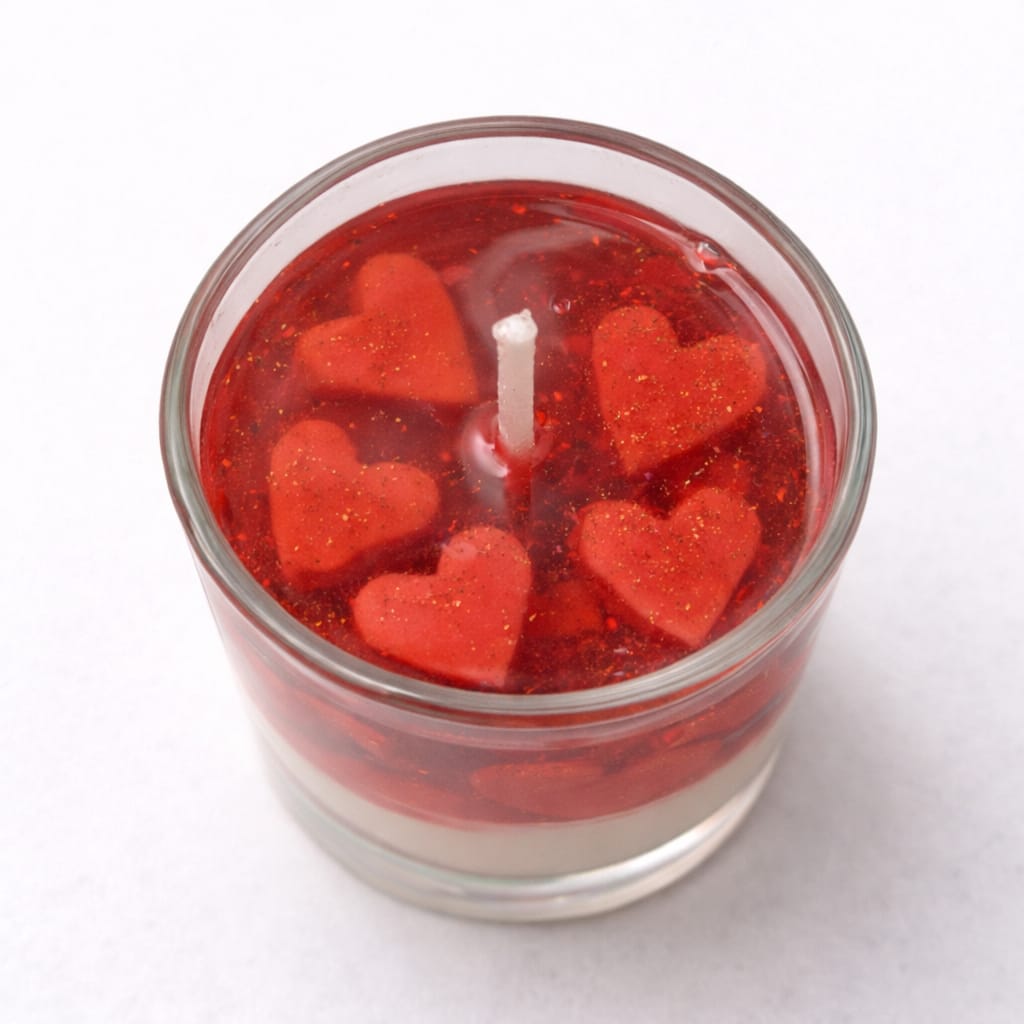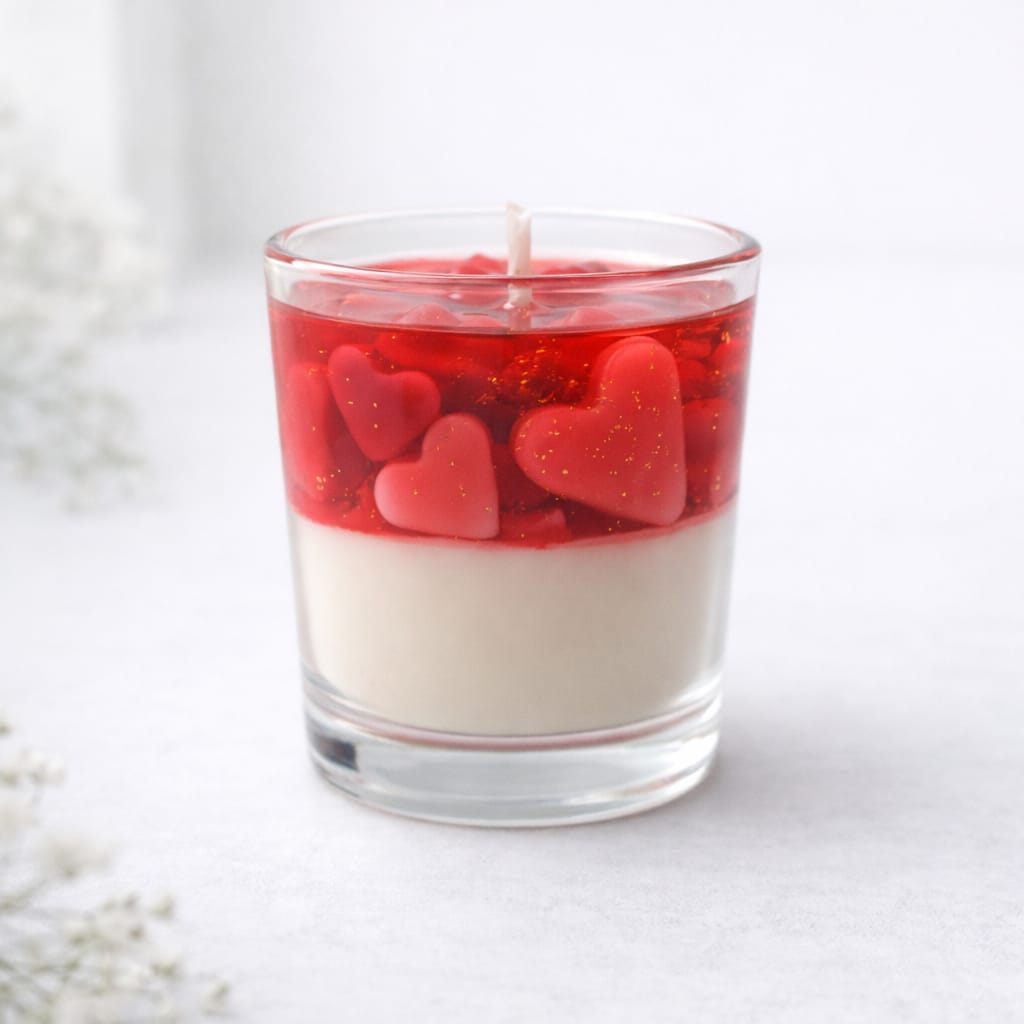 Create a warm and enchanting atmosphere with our beautifully handcrafted Love Layer Candle. Designed in a clear glass jar, this candle features a creamy white base topped with a vibrant red gel layer, delicately embedded with charming heart accents that symbolize love and affection.